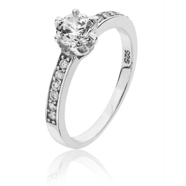 Silver 5.7 mm Round 6 Claw Shoulder Set Cubic Zirconia Ring SRG0044