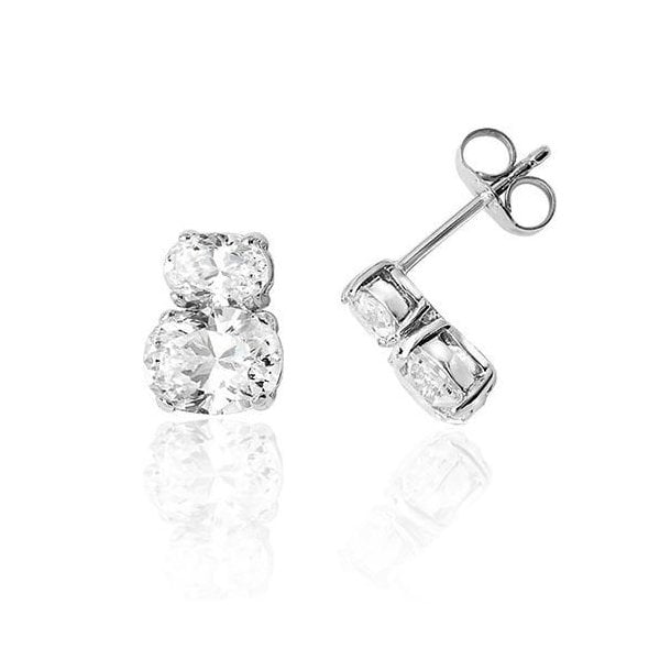 SILVER DOUBLE OVAL SHAPE CZ STUDS