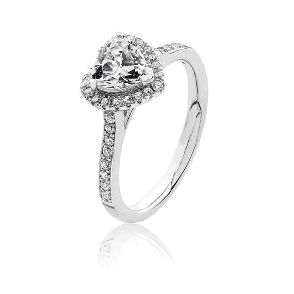 SILVER SML CLAW SET HEART SHAPE HALO STYLE CZ RING
