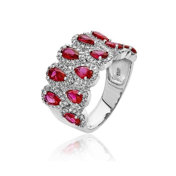SILVER MULTI HALO PEAR SHAPE RED & WHITE CZ RING RHODIUM PLATED - SIZE N