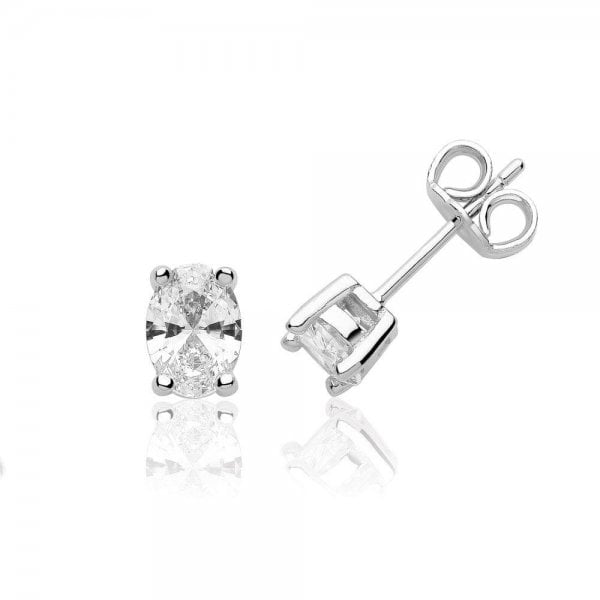 Single Stone 7 X 5 Oval Claw Set Earrings Sterling Silver / Rhodium Plated / Zirconia
