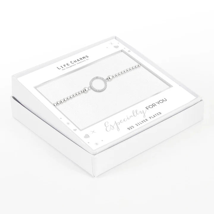 Beautiful beaded bracelet with open circle charm with cz stone crafted in silver with attention to detail and aesthetic appeal.