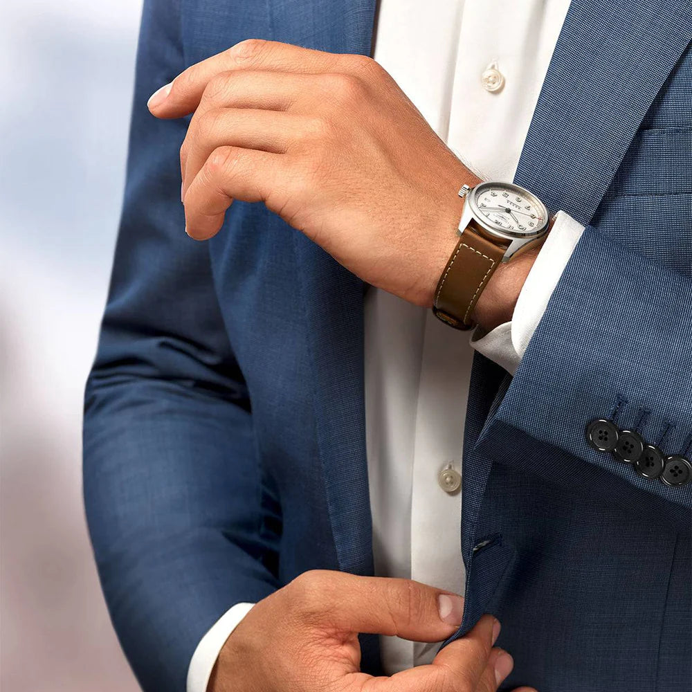 Versatility: With 100 m water resistance, a robust steel case, and a refined yet durable leather strap, this watch is equally suited to travel, everyday wear, or smart evening occasions.