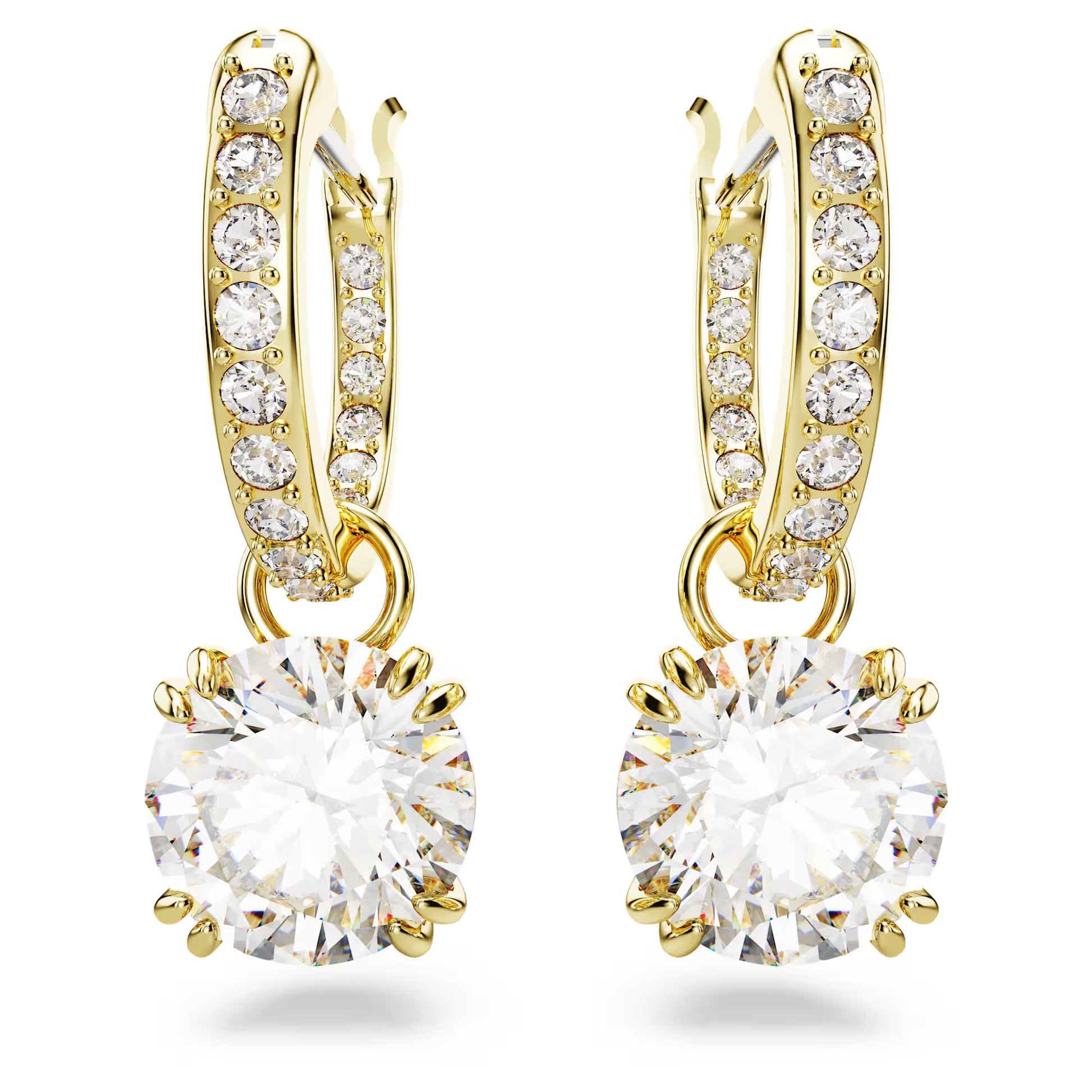 These mesmerizing drop earrings from the Stilla family have wear-forever power. Striking the balance between dramatic and refined, dazzling centre stones are enhanced with pavé on the gallery and hoops, which are set with gold-tone plating. Wear them with your hair tucked to really let them shine.