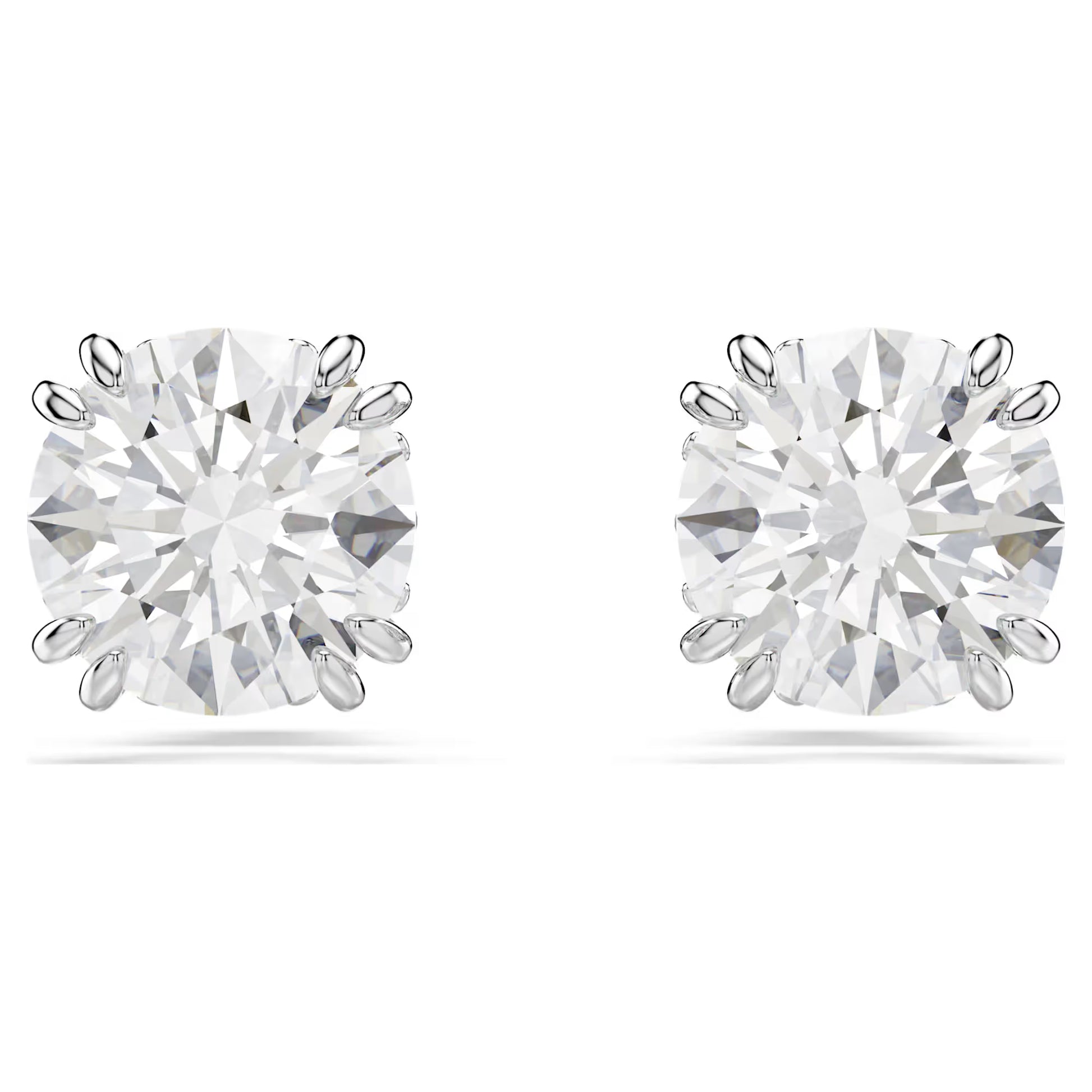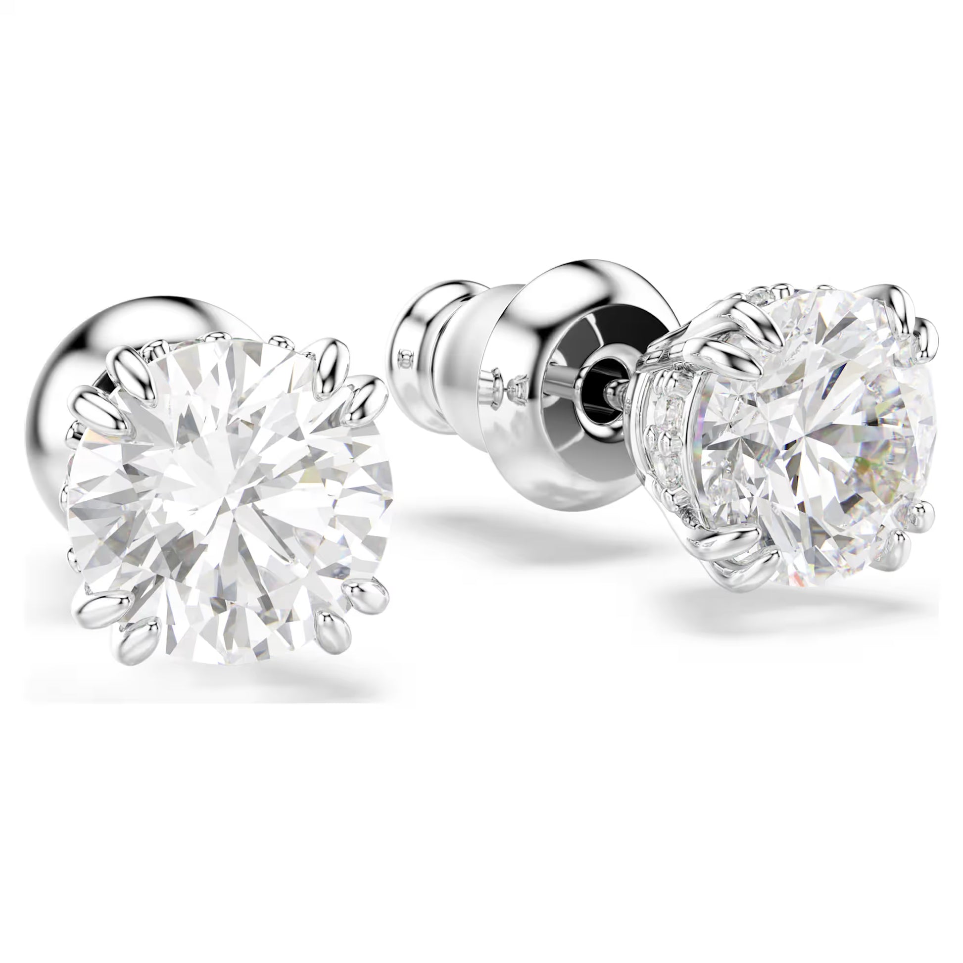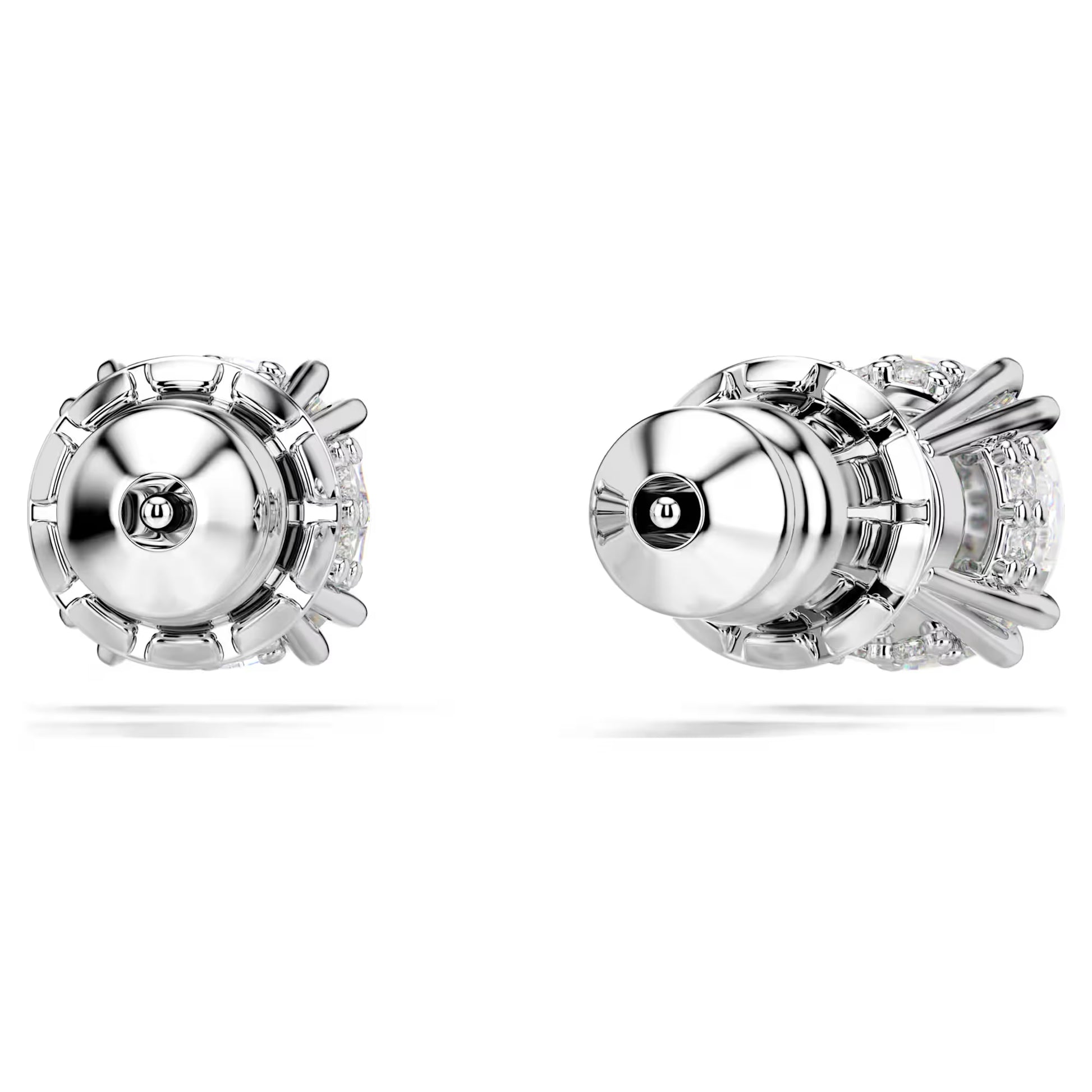 Stilla Stud Earrings, Round Cut, White, Rhodium Plated