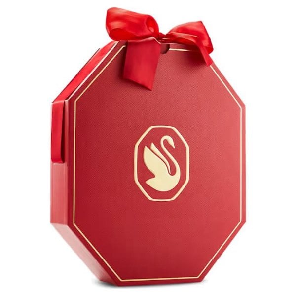 Build excitement in the countdown to the holidays with the spectacular Swarovski Advent Calendar. Presented in festive red packaging with a matching bow, and exclusively available in 2024, the calendar conceals a wondrous surprise behind each of its 25 doors. This year’s theme takes you on a snowy journey aboard Swarovski’s holiday train, complete with carriages, glistening stars, snowflakes, green forests and enchanting characters, all totalling 5,283 facets. Follow the track into our crystallised wonderland and start each day with delight. Decoration object. Not a toy. Not suitable for children under 15.
