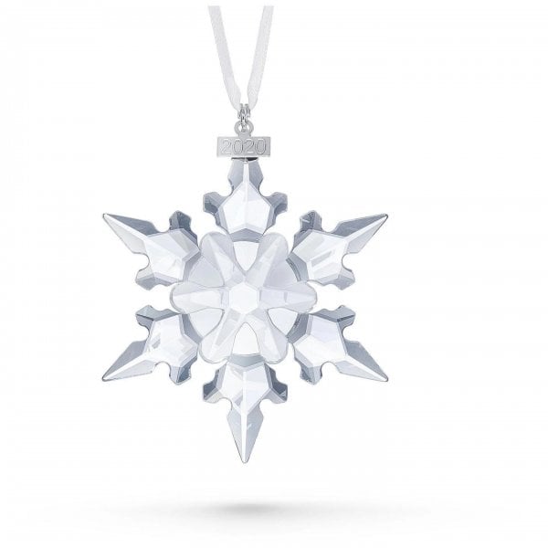 The sparkling Swarovski Annual Edition Ornament in the shape of a snowflake is expertly crafted with 110 sparkling clear crystal facets. Attached to a white satin ribbon, it features a metal tag engraved with '2020' and is exclusively available this year. Perfect to hang on your tree, in a window or on one of our elegant Christmas Ornament Home Displays it would be a lovely gift to mark a special moment in 2020, such as the birth of a child, a wedding or an anniversary. Decoration object. Not a toy. Not suitable for children under 15.