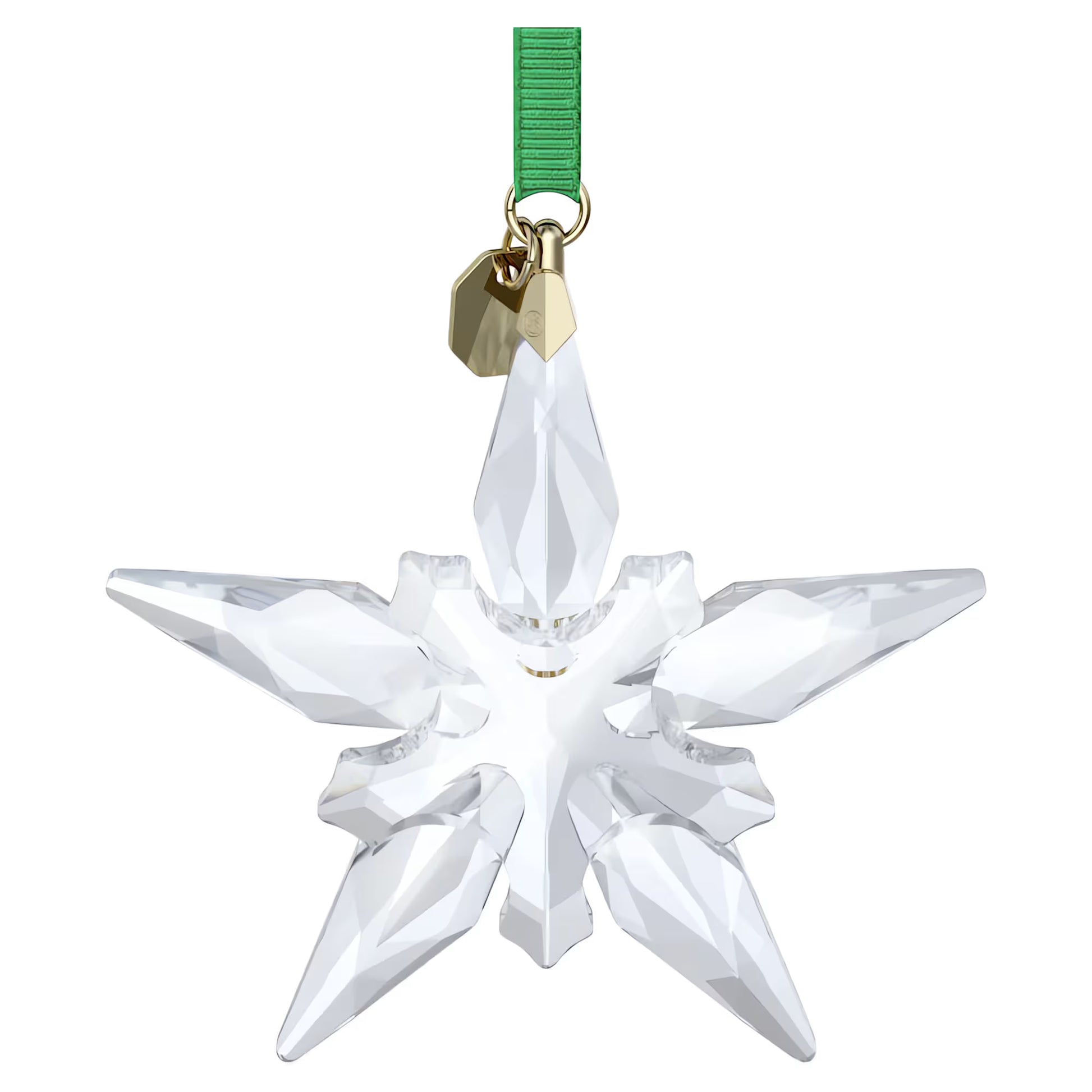Embrace one of the traditional highlights of the season with this Swarovski Annual Edition Ornament. Suspended from a green grosgrain ribbon with champagne gold-tone accents, the star-shaped design is precisely cut with 170 light-catching facets, beautifully embodying Swarovski’s complex simplicity and technical skill. The design is completed with an engraved 2025 tag. Perfect for hanging on a decorative tree, in a window, or around the home, this ornament is a truly wondrous way to highlight your holiday celebrations. Decoration object. Not a toy. Not suitable for children under 15.