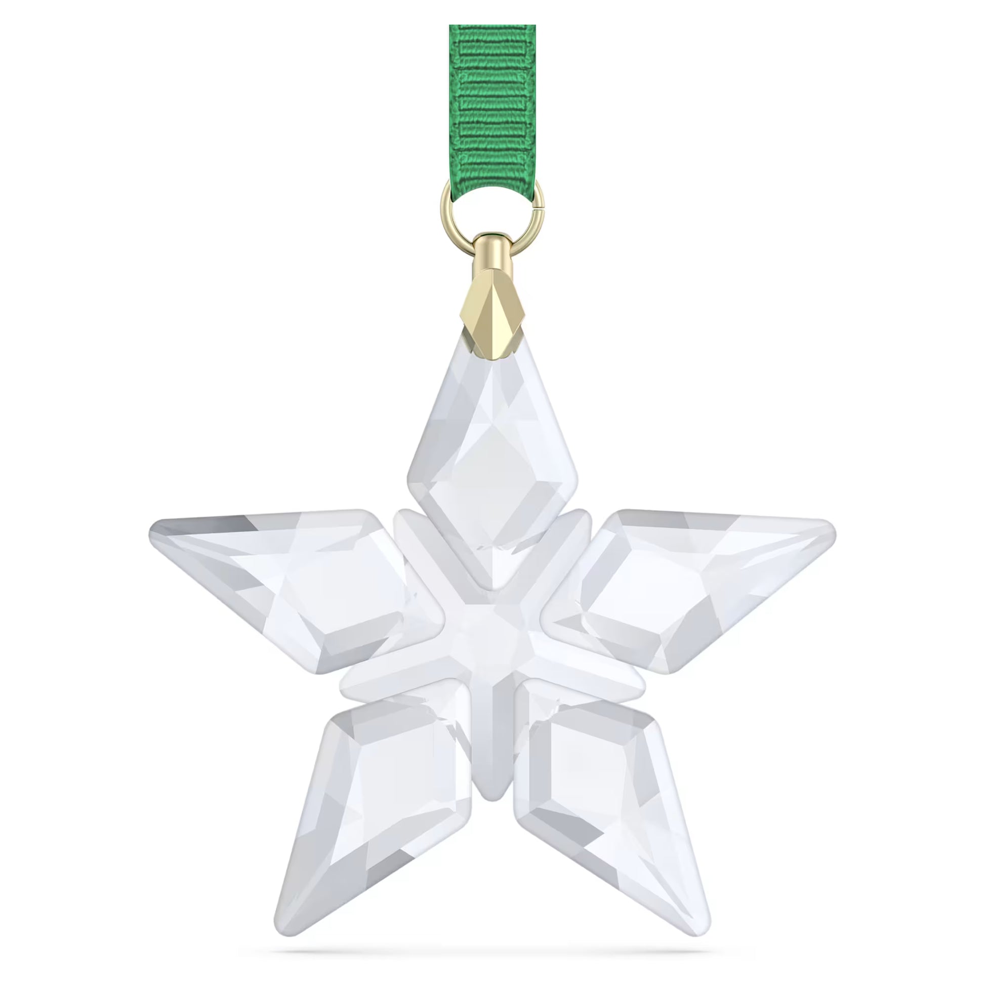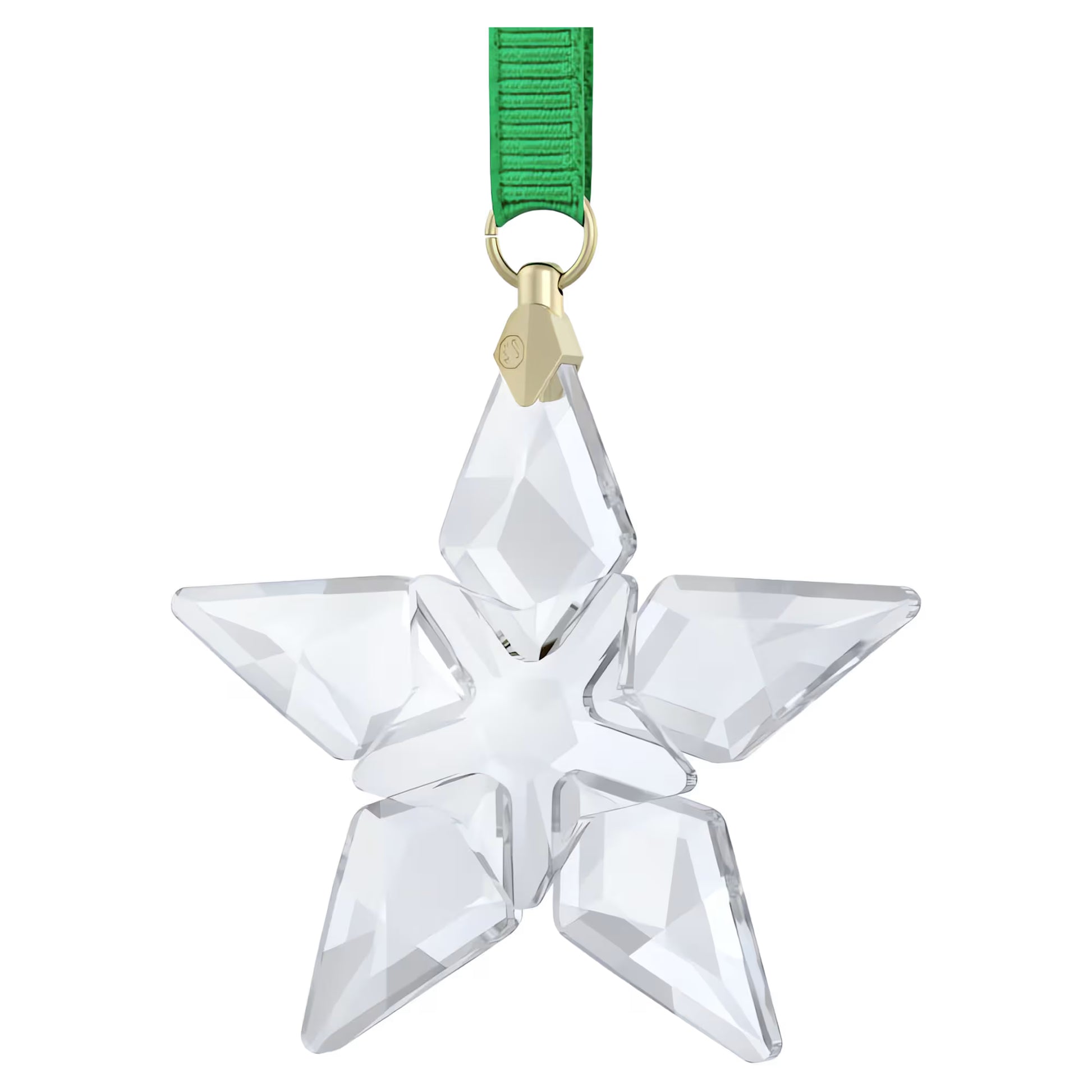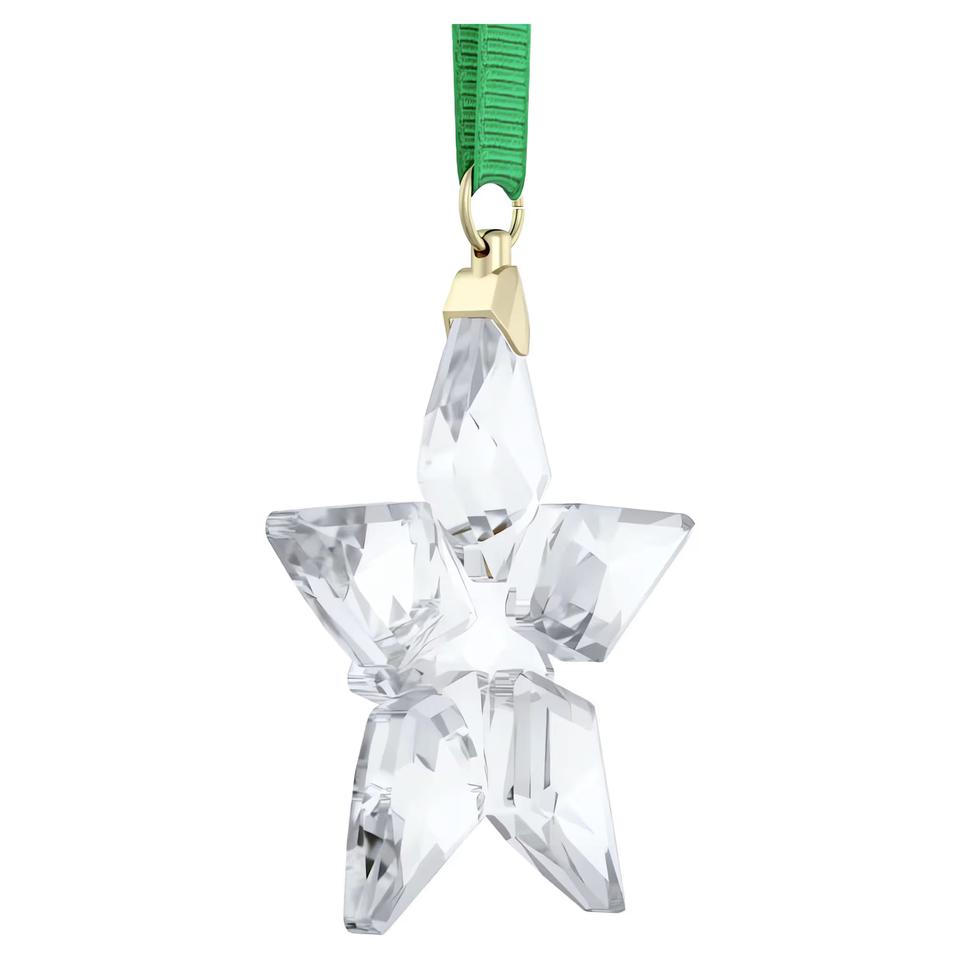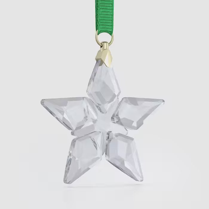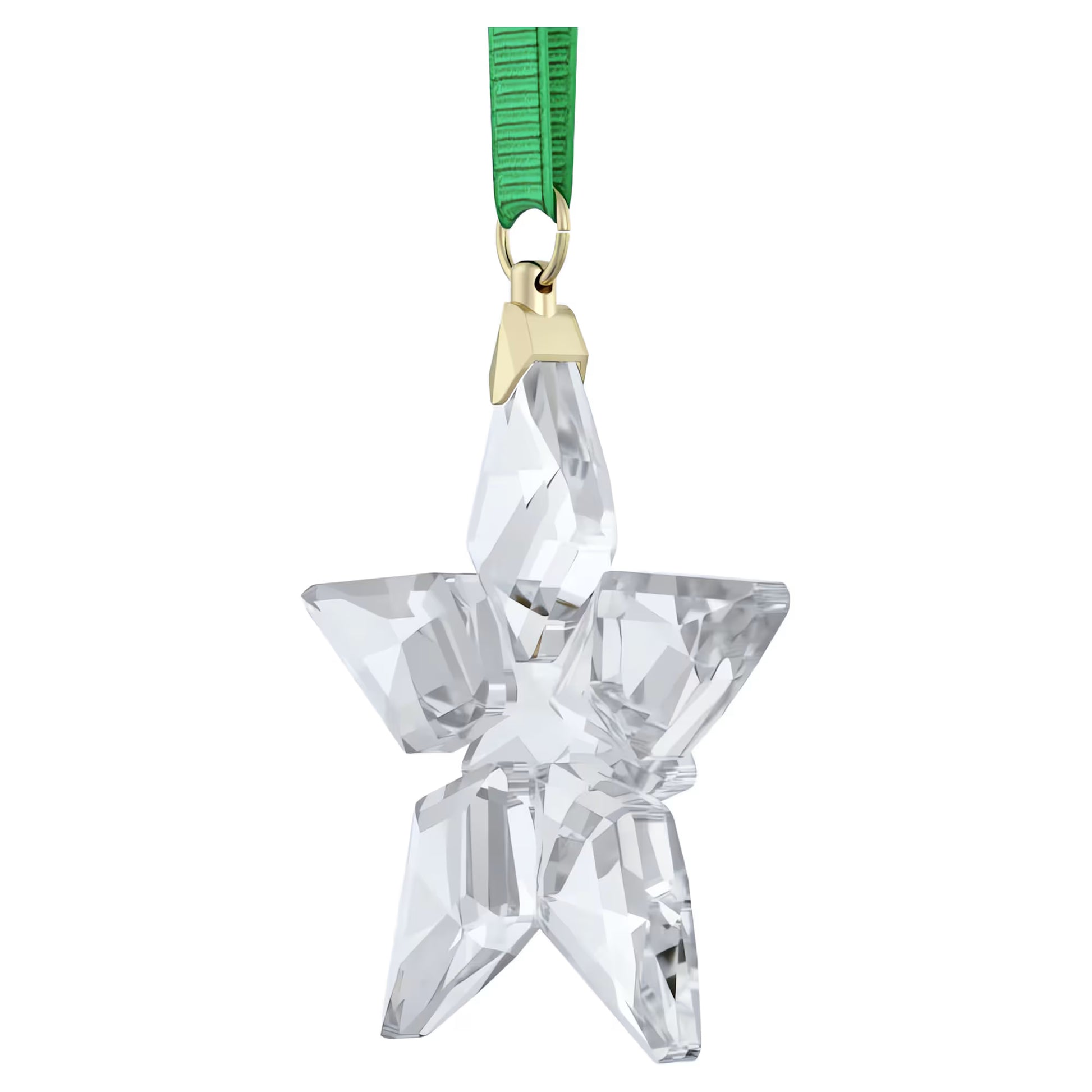 Enjoy a delicate touch of holiday magic with this Annual Edition Little Star Ornament inspired by the harmony of nature and science, which is brought to life by Swarovski's unmistakable savoir-faire and expert precision. 2023's clear star design is crafted with 97 facets and suspended from a green grosgrain ribbon with gold-tone plated accents. This wondrous ornament would make an elegant gift for a loved one, or add some festive shimmer to your own home décor. Decoration object. Not a toy. Not suitable for children under 15.