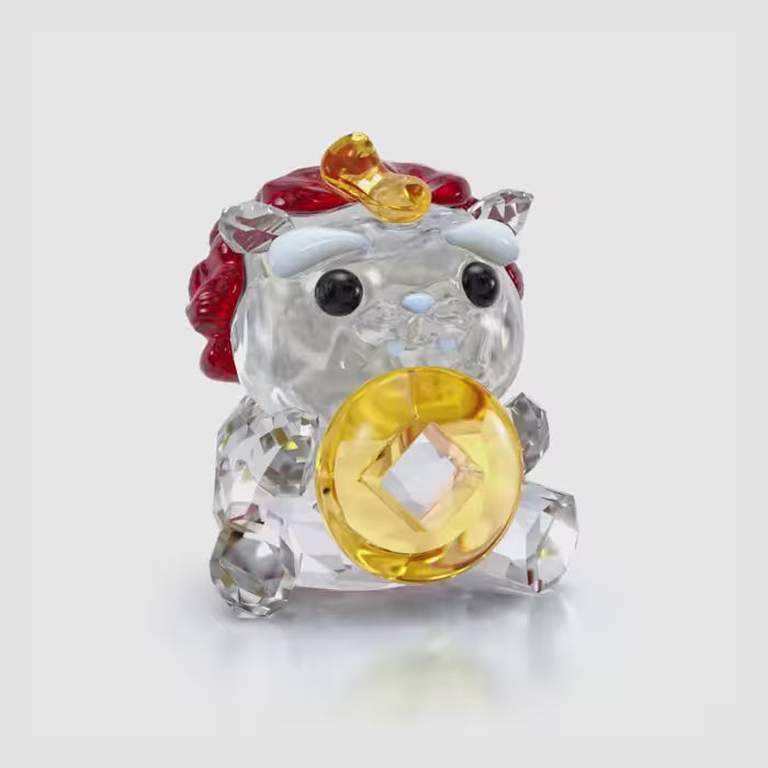 As one of several guardians of heaven, this cute and mythical character is known to symbolise wealth, good fortune, and protection. Swarovski has interpreted the Pixiu holding a coin, with touches of red and yellow, and 293 light-catching facets. Place it in your home as an auspicious piece throughout the year. Decoration object. Not a toy. Not suitable for children under 15.