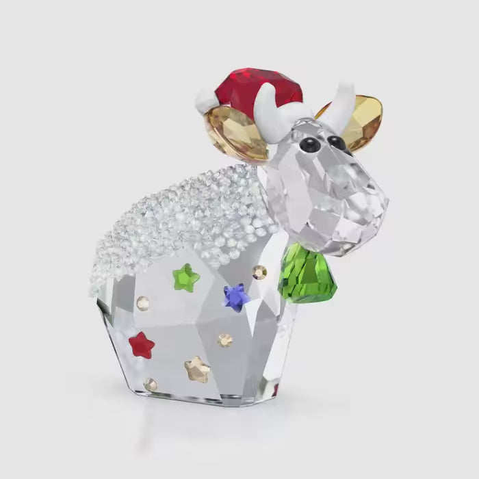Mo the cow has become an iconic part of the Swarovski holiday season. Celebrating the character’s 19th anniversary, Mo returns this year in a colourful festive outfit, adorned in round and star-shaped flatback crystals. The design is crafted with 404 light-reflecting facets, while her back is encrusted with crystal rocks in a Moonlight coating. Other special details include the green bell, the red Santa hat and the shiny ears in Swarovski’s Golden Shadow effect. A collectible creation that is ideal for Mo’s biggest fans. Decoration object. Not a toy. Not suitable for children under 15.