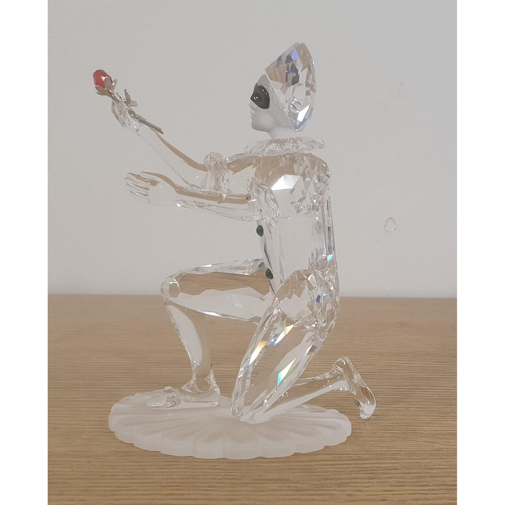 Available during 2001, Harlequin was the final piece of the Masquerade trilogy. He is made from clear, frosted and black crystal, and holds a red crystal rose which has metal stem and leaves.