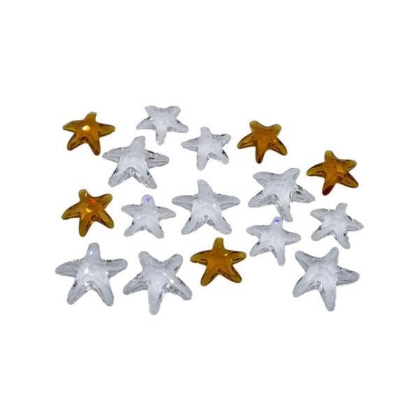 10 clear starfish and 5 topaz starfish.