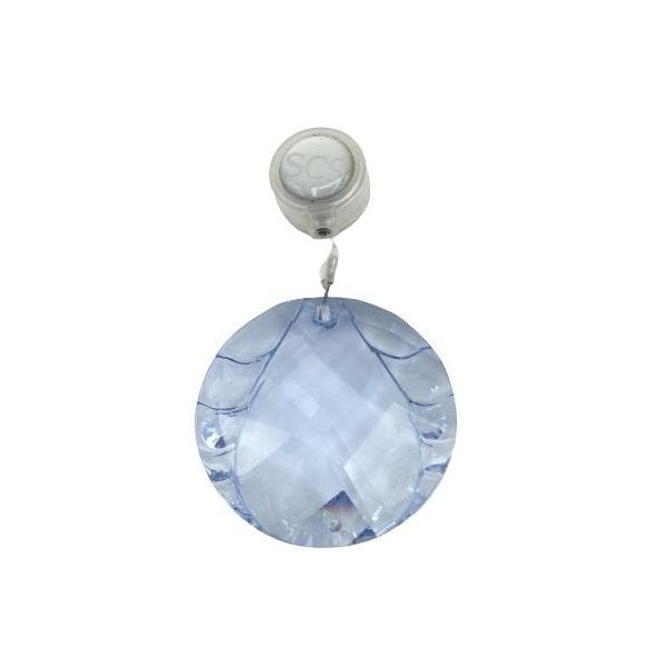 Made from light blue crystal comes with a retractable wire with a sticky pad on the rear.