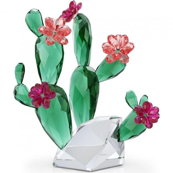 Demonstrating exquisite attention to detail and drawing inspiration from nature, this cactus figurine serves as a beautiful symbol of strength and endurance in your home. Crafted from pink, orange-pink, and green crystals, the design boasts an astonishing 2,951 facets. Each intricately cut angle captures and reflects light.