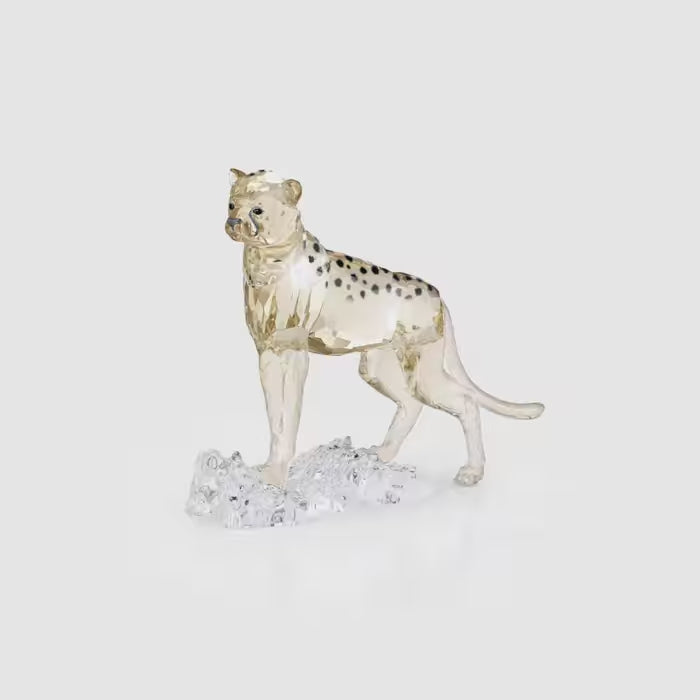 Adorable yet full of power, this dazzling figurine is a fine addition to the Elegance of Africa collection. The design depicts a baby cheetah called Jabari – a name that means “fearless”, and one that suits its confident spirit. The cub has been wonderfully crafted using a beige colourway that symbolizes the warmth of the savannah grasslands, while exceptional detail can also be seen through the tear-shaped stripes from eyes to mouth and the spotted fur that is detailed to the highest level of mastery. Display this piece to celebrate the wonder of nature in your home, or pair the cub with its mother Mehira to expand your collection. Decoration object. Not a toy. Not suitable for children under 15.