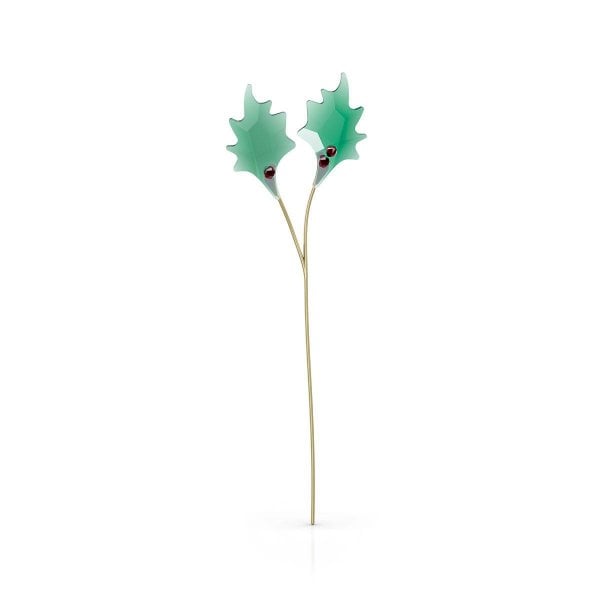 Add some festive decoration to your space with this beautiful, crystal creation depicting a holly sprig. A holiday season symbol of happy home life, love and hope, the holly leaves sparkle with 149 facets of green and red crystal. Inspired by the minimalist trend for pared-back foliage decoration, the stem’s soft lines, crafted in brushed, champagne gold-tone metal, add contemporary style to the design. It is a lovely gift that can be displayed in either the small or large Garden Tales Decorative Vase to add refined modern style to a home.