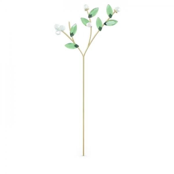 A unique and elegant accent to your décor, this beautiful, crystal creation, inspired by the minimalist trend for single foliage vases, depicts a branch of mistletoe. An evergreen plant that will blossom even in winter, mistletoe symbolizes happiness and vitality; and in American and European culture, to kiss under it is to foretell a happy and long life together. Sparkling with 301 facets of white and green crystal, the mistletoe leaves and berries are complemented beautifully by the warm tones and soft lines of the brushed, champagne gold-tone, metal stem. This lovely gift, full of modern style, can be displayed in either the small or large Garden Tales Decorative Vase to add subtle refinement to a home. Decoration object. Not a toy. Not suitable for children under 15.