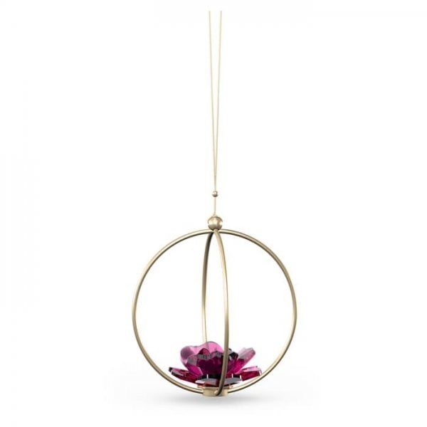 Taking cues from contemporary minimalist interior design, this Swarovski ball ornament is an elegant addition to your home. Its sleek silhouette, crafted in brushed gold tone plated metal, features a crystal rose magnet as its centrepiece. A time-honoured way to say “I love you”, the rose sparkles with 123 facets of red crystal. Display in a window using the gold tone ribbon or simply place it on a surface to catch the light in dazzling Swarovski style. The detachable magnetic flower can be used elsewhere, making this a versatile gift choice. Decoration object. Not a toy. Not suitable for children under 15.