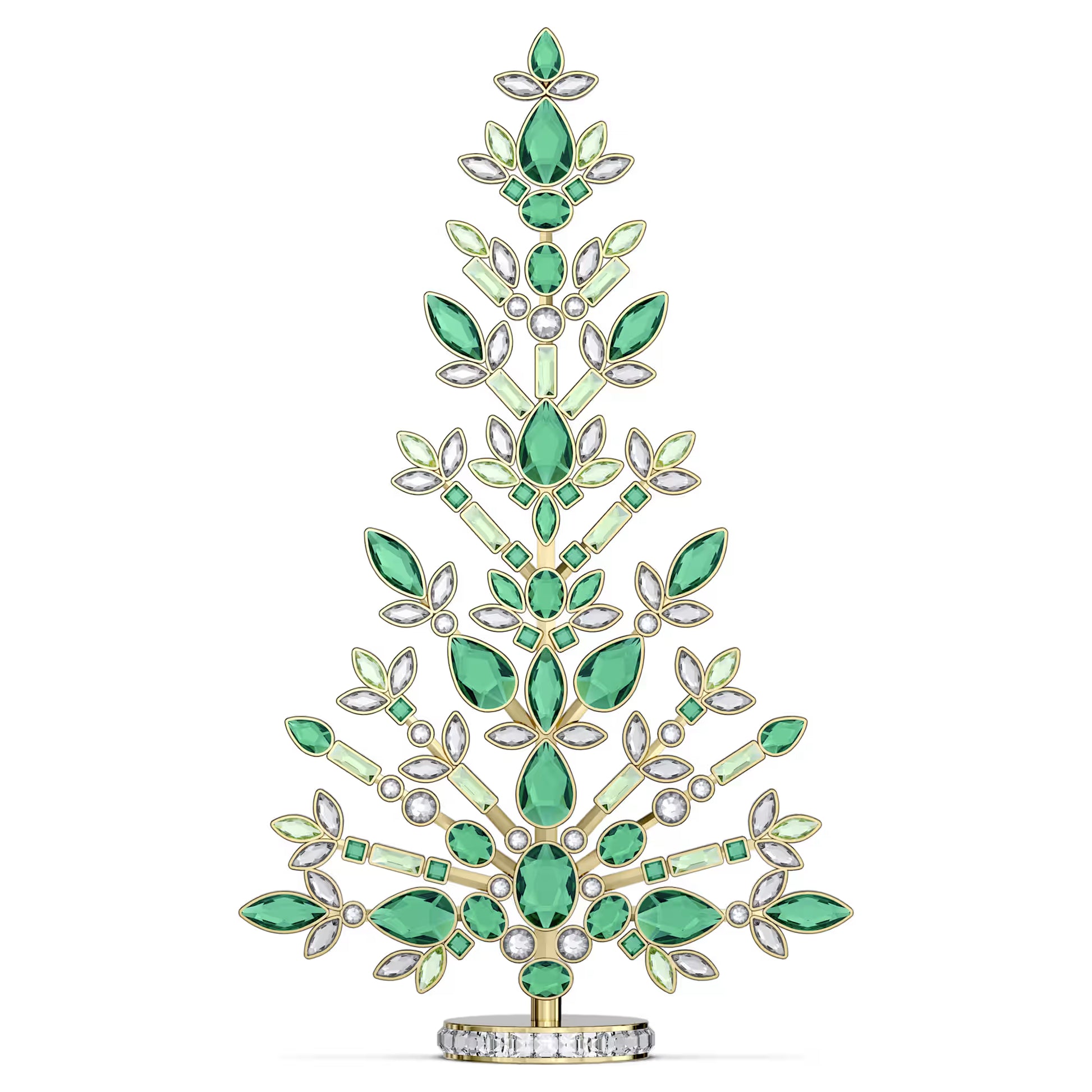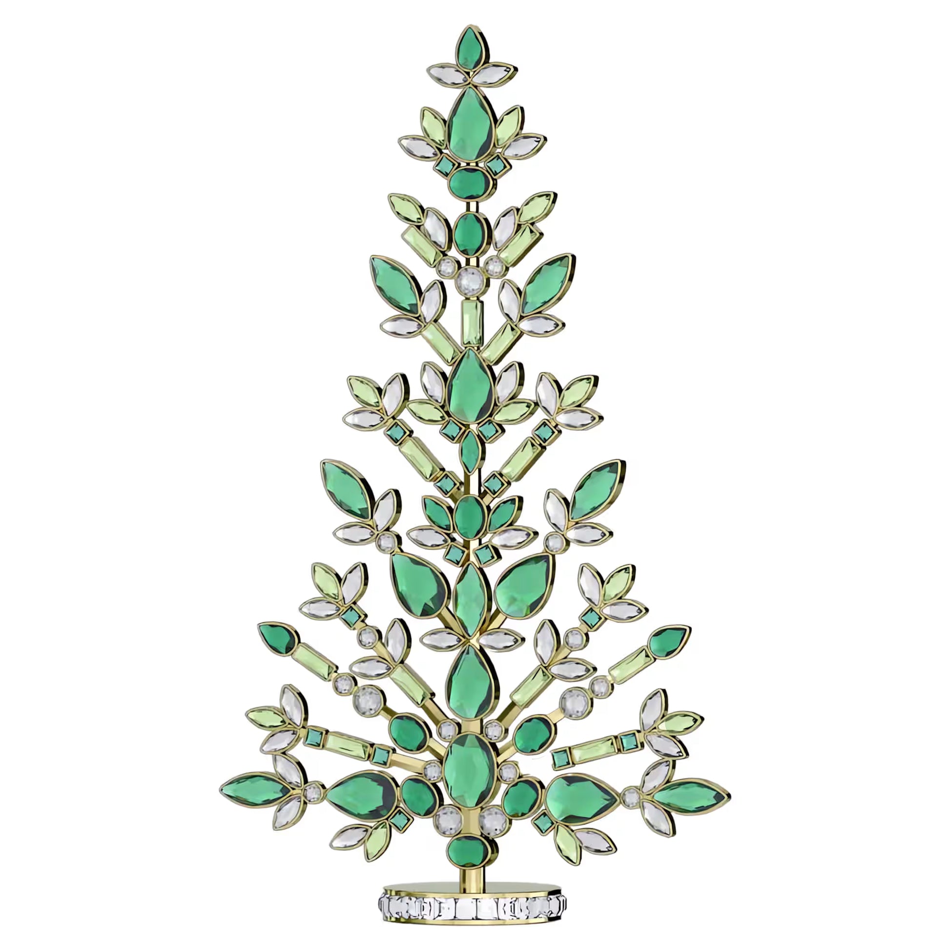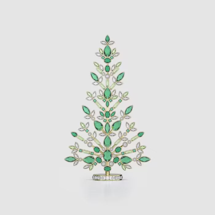 Re-envisioning one of the festive season’s most meaningful symbols, this radiant tree ornament will make an eye-catching centrepiece. The design is inspired by the Gema family, with verdant green crystals applied on both sides amid gold-tone branches. 296 individual crystals in various cuts and shades give this piece depth while the jewellery stone setting technique ensures it shines from every angle. Make this tree a signature addition to your holiday décor and prepare to celebrate. Decoration object. Not a toy. Not suitable for children under 15.