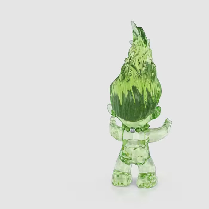 Created as a symbol of good luck in 1959, the DreamWorks Good Luck Trolls have been capturing hearts for over 65 years. In celebration of their unique style and enchanting personalities, this cute figurine reflects Swarovski’s signature green with 811 facets in a variety of shades. The piece is distinguished by its tall hair, crystal bead necklace and jet black eyes, while a single octagon-shaped crystal is placed on the belly button. Display this troll anywhere in your home to celebrate individuality and optimism. Decoration object. Not a toy. Not suitable for children under 15.