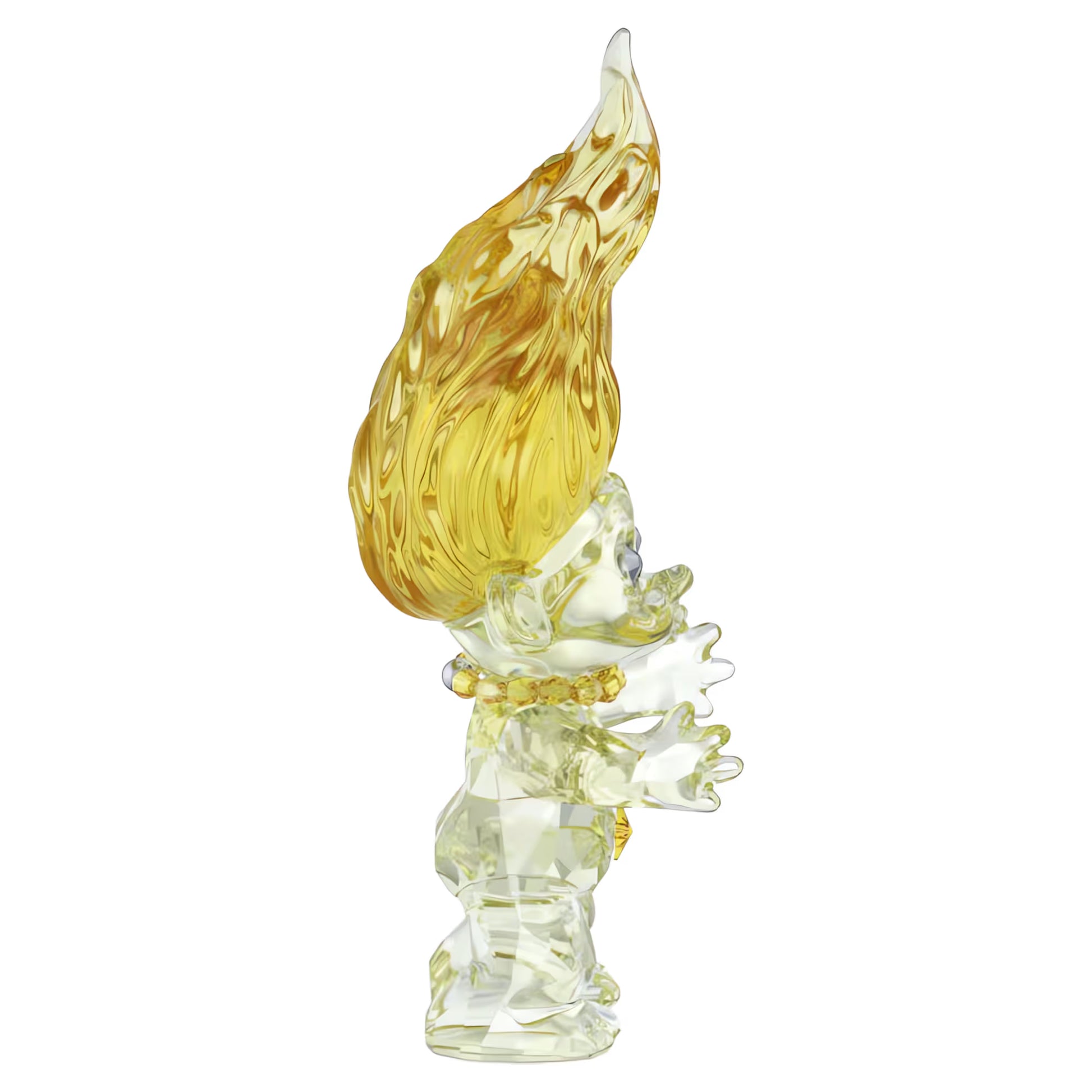 Created as a symbol of good luck in 1959, the DreamWorks Good Luck Trolls have been capturing hearts for over 65 years. In celebration of their unique style and enchanting personalities, this cute figurine reflects Swarovski’s signature yellow with 811 facets in a variety of shades. The piece is distinguished by its tall hair, crystal bead necklace and jet black eyes, while a single star-shaped crystal is placed on the belly button. Display this troll anywhere in your home to celebrate individuality and optimism. Decoration object. Not a toy. Not suitable for children under 15.