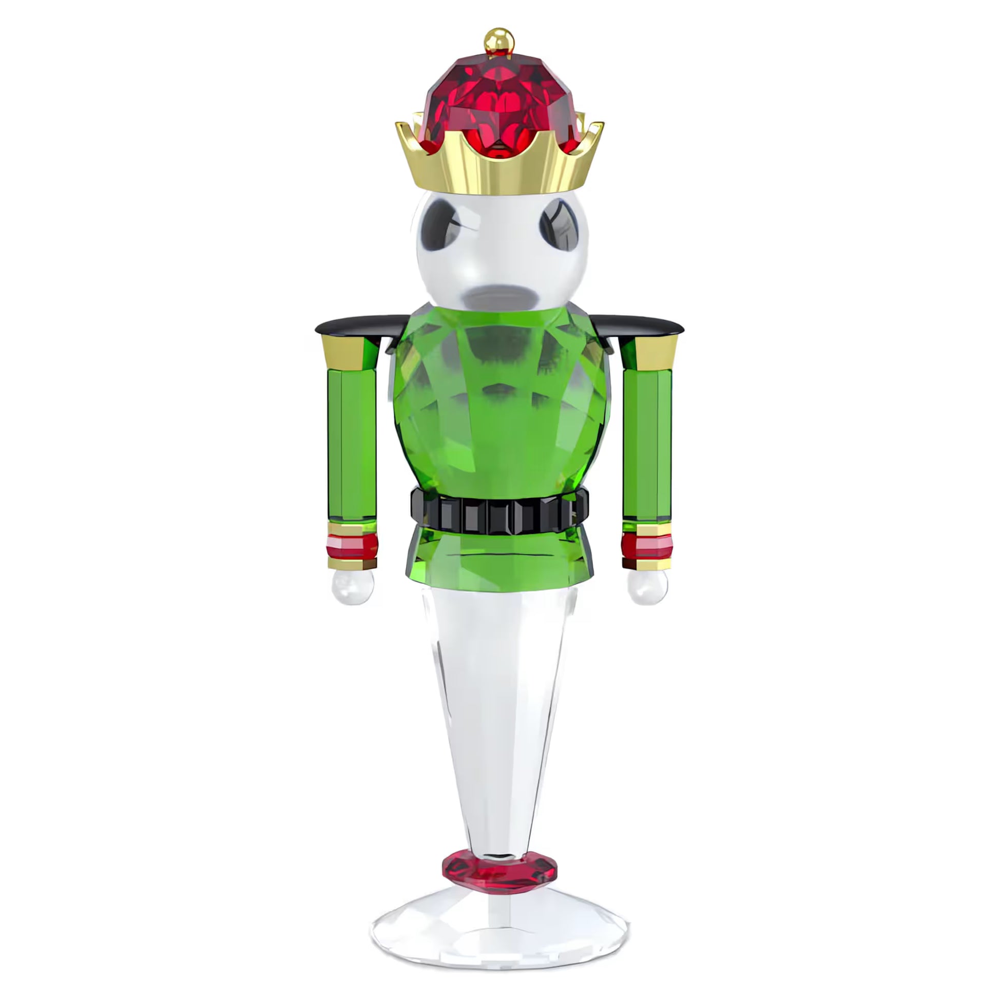 Inspired by the charming nutcracker character, this crystallized figurine brings colourful holiday cheer. Crafted with 552 facets, the design features classic green and red tones, along with a metallic bronze effect. Delicate buttons, detailed sleeves, and a white fabric beard all combine to display Swarovski's impressive savoir-faire. A striking symbol of festive charm. Decoration object. Not a toy. Not suitable for children under 15.