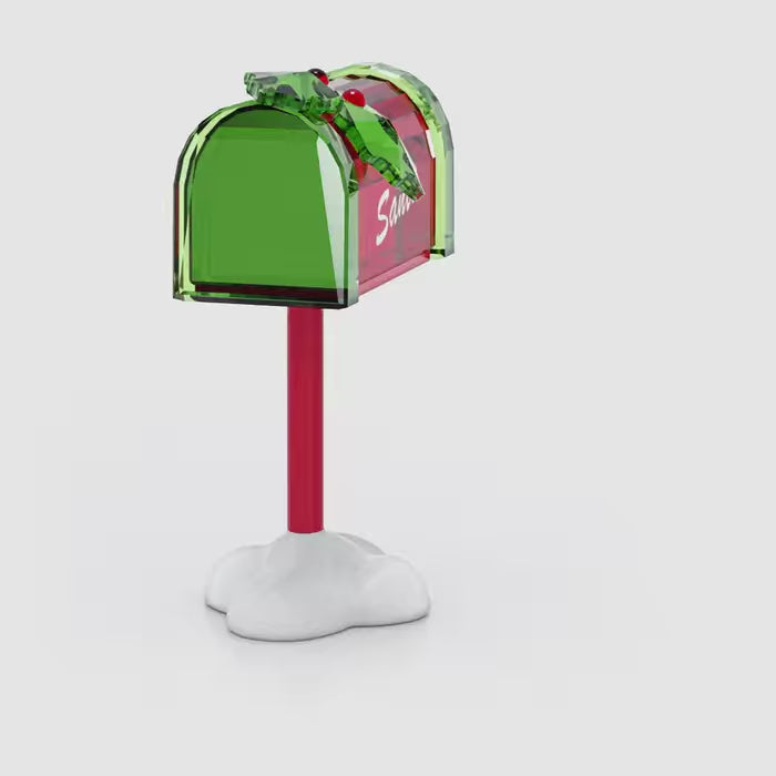 Relive the excitement of writing a letter to Santa with this cute mailbox ornament. With 164 facets, it shines in red and green crystal with the word 'Santa' in white print and a festive sprig of holly. The base is crafted from white and red lacquered metal. A great gift idea, this exquisite design combines perfectly with the Holiday Cheers Santa Claus and Santa's Mailbox. Decoration object. Not a toy. Not suitable for children under 15.