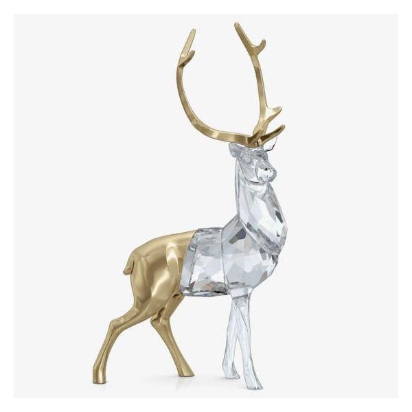 Full of holiday magic, this elegant stag offers a very refined and modern spin on a classic, festive motif. Showing a high level of craftsmanship, the front half of this graceful creature features 304 clear crystal facets, while the back shines in brushed, champagne gold-tone metal. As a powerful symbol of nobility and honour, the stag makes a meaningful gift. Decoration object. Not a toy. Not suitable for children under 15.
