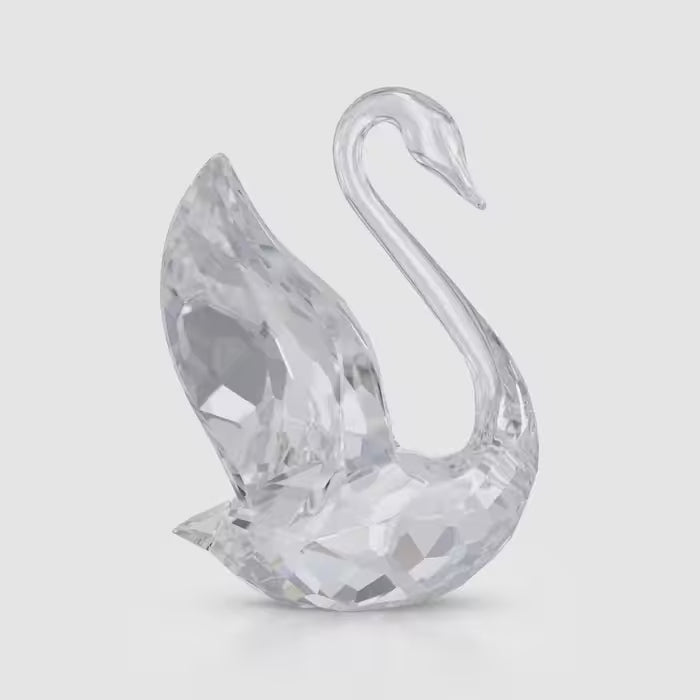 This medium-sized decoration piece is inspired by the new Swarovski Swan logo. Designed by Martin Zendron, it is crafted purely from clear crystal with 299 facets, with the Swan's head and neck shaped to form an elegant 'S' for Swarovski. Looking towards the future, with its wings lifted and ready for take-off, this beautiful design celebrates the brand's unique craftsmanship and heritage in a modern and sophisticated way. Decoration object. Not a toy. Not suitable for children under 15.