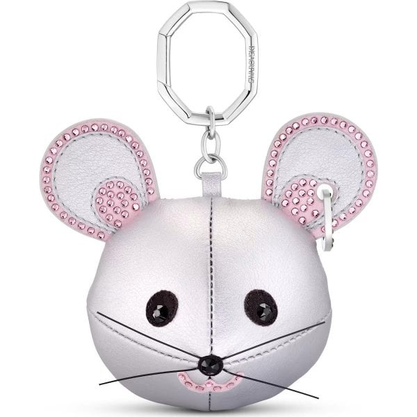 Complete with bouncy whiskers and a cute tail, this adorable keyring plays with our iconic Mouse design. The silver-toned character hangs from an octagonal ring, and its features are picked out in shining black and pink crystals. For an extra touch of fun, the mouse wears a hoop earring crafted from green stones. Not a toy. Not intended for use by children under the age of 15.