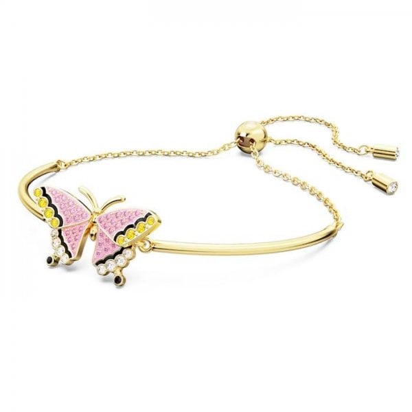 Let the delicacy of nature land on your wrist with this graceful butterfly bracelet from the Idyllia family. Set in gold-tone plating, the glistening wings are formed from crystals in pink, white, black, and yellow, and the bracelet has a sliding closure for the perfect fit. A radiant piece that will bring you joy time and time again.