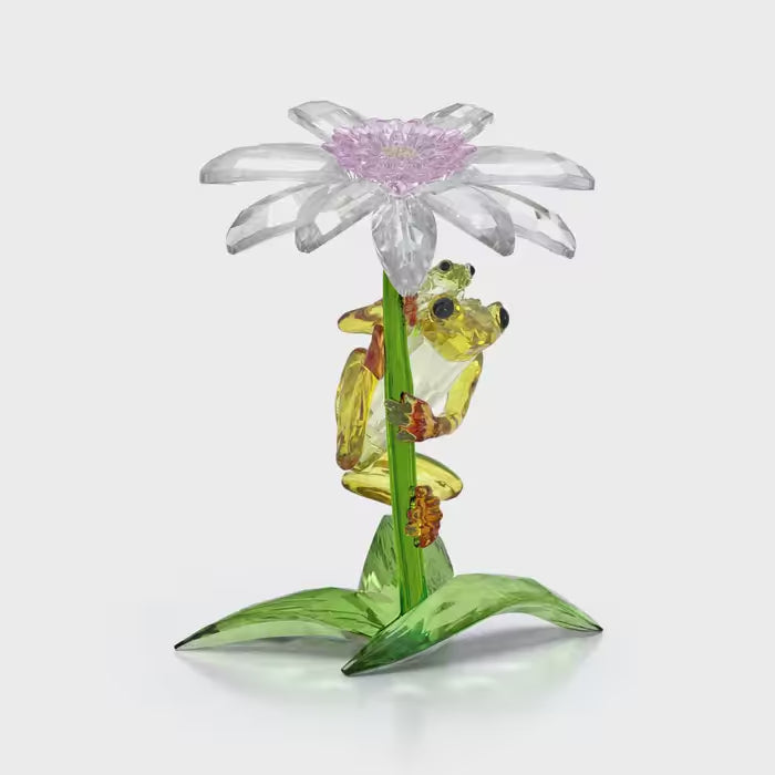 In this naturalistic scene, a mother and baby frog take shelter from the rain beneath a bright daisy flower. This delicate creation is crafted in a multitude of colours and displays Swarovskis unmistakable savoir-faire through 986 facets and touches of lacquered metal. Add this piece to your home décor to serve as a symbol of tranquillity and family unity. Decoration object. Not a toy. Not suitable for children under 15.