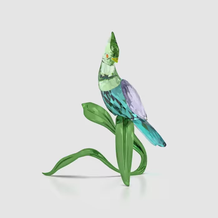 Nature comes alive in this verdant Swarovski creation, showcasing a majestic green turaco displaying its brilliant plumage. The joyful scene has been crafted with 397 precision-cut facets and combines a variety of vivid colours with glossy leaves in green lacquered metal. Place it anywhere in your home to feel your own heart sing. Decoration object. Not a toy. Not suitable for children under 15.