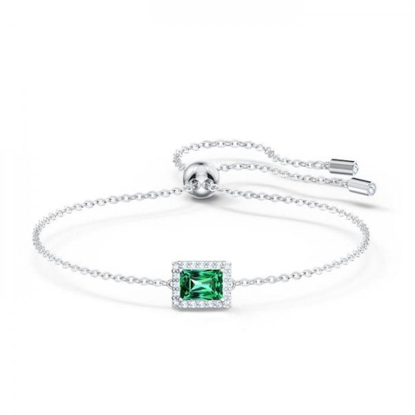 This beautiful bracelet by Swarovski adds timeless appeal to your everyday outfits. A rectangular, deep green stone sits at the centre, its sparkle beautifully complemented by a surrounding row of white pavé. The size of the bracelet is easy to adjust usi