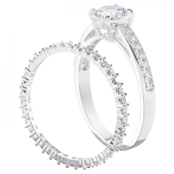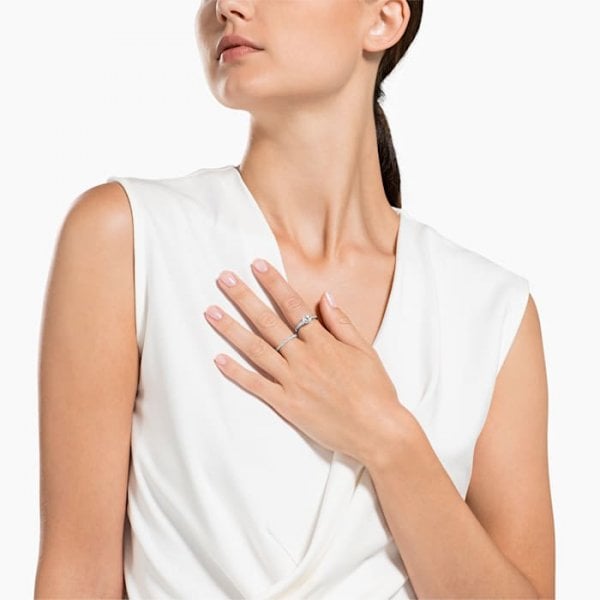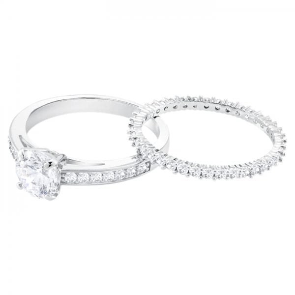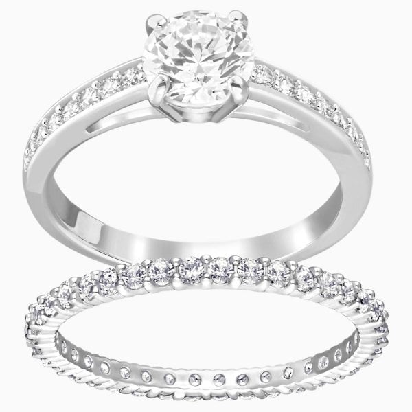 Attract Ring Set, White, Rhodium Plated Size 58*