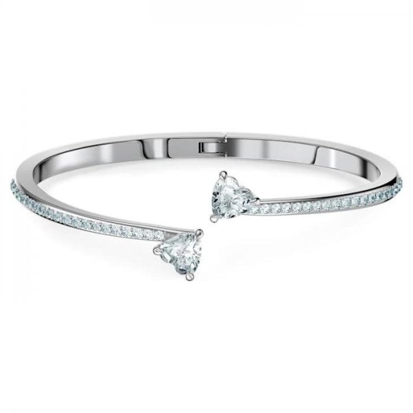 Attract Soul Heart Bangle, White, Rhodium Plated S