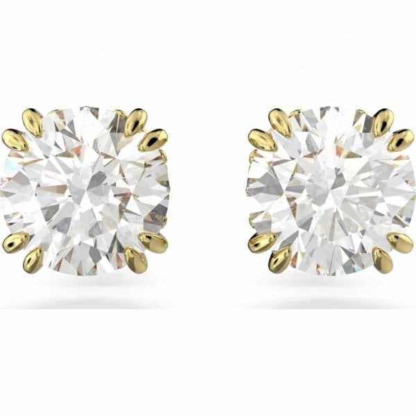 Constella Stud Earrings, Round Cut, White, Gold