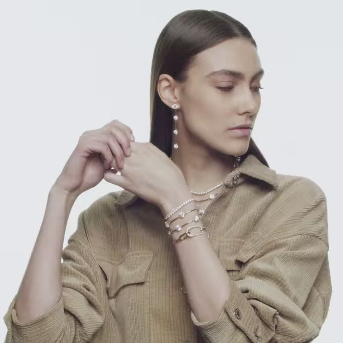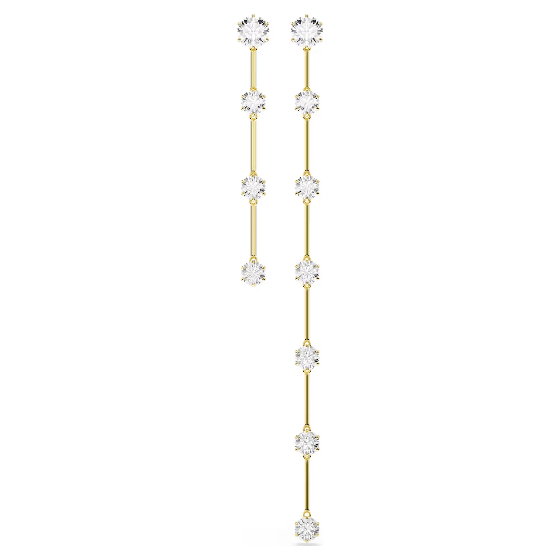 Elevate your style with the Swarovski Constella Asymmetrical Gold Drop Earrings.These stunning earrings feature a cascade of clear crystals set in a gold-tone finish, offering a touch of asymmetrical modernity. Perfect for adding sparkle to any outfit, they are designed for those who dare to stand out. A secure fastening ensures comfort for all-day wear, making them as practical as they are beautiful.