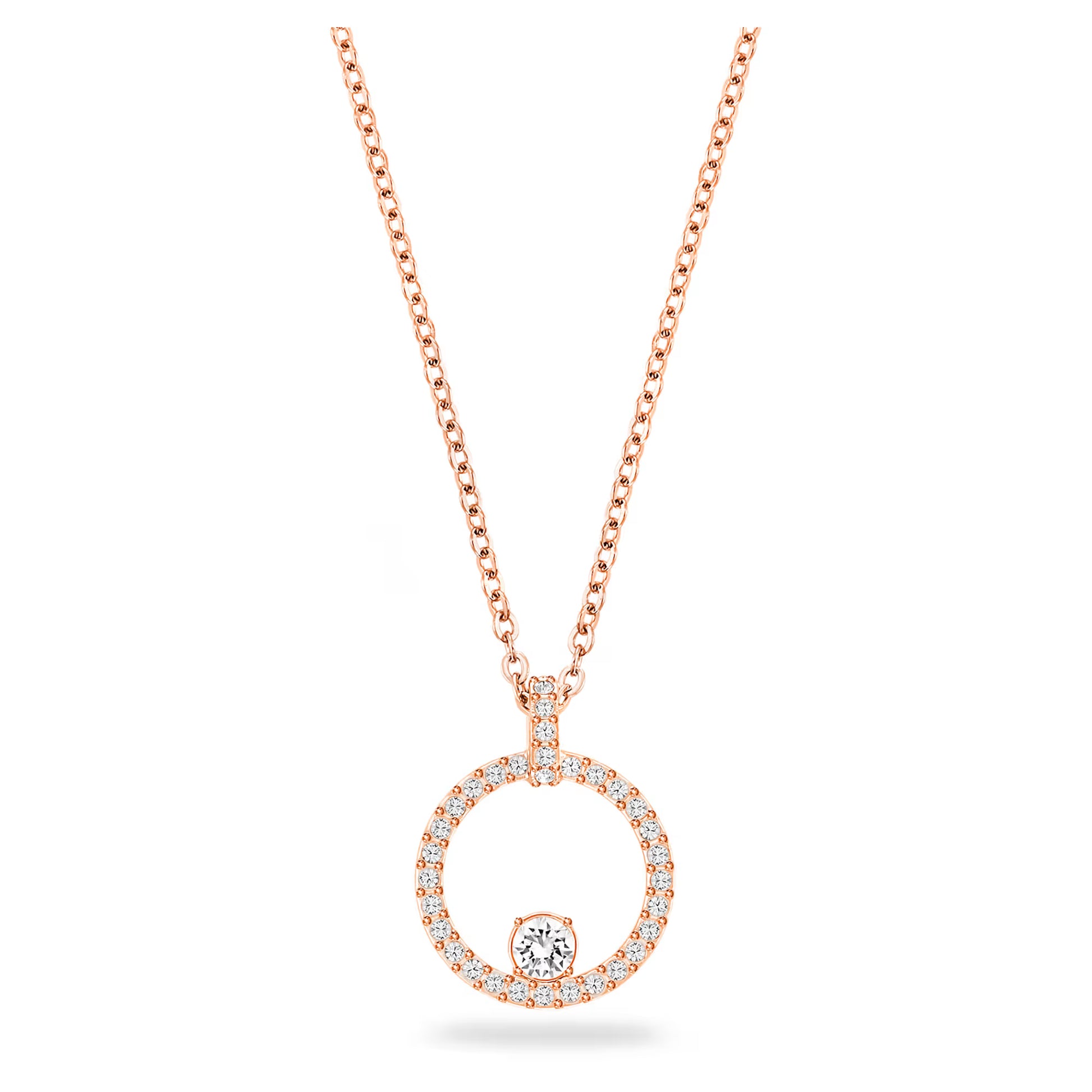 A stunning new interpretation of a timeless classic; the circle pendant. Highly refined, this design sparkles in clear crystal pavé. Rose gold-plated metal adds a modern touch. Wear with a longer pendant for an on-trend multi-length layered look. The pendant measures 1.5 x 2 cm and comes on a 38 cm chain.