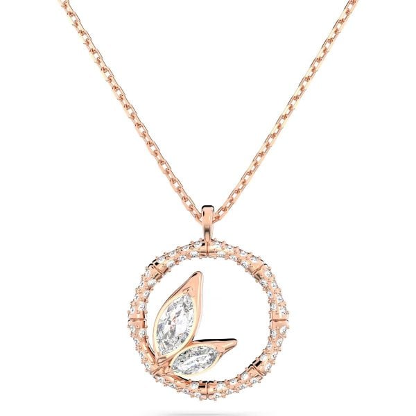 Shine bright in this exquisite necklace from the Dellium family. Inspired by the inner strength of bamboo, it features pavé-embellished links that reflect the lucky number eight. Two white crystals inside a circular pendant finished with rose gold-tone plating complete this delicate piece. It will make a meaningful gift for a loved one, or yourself.