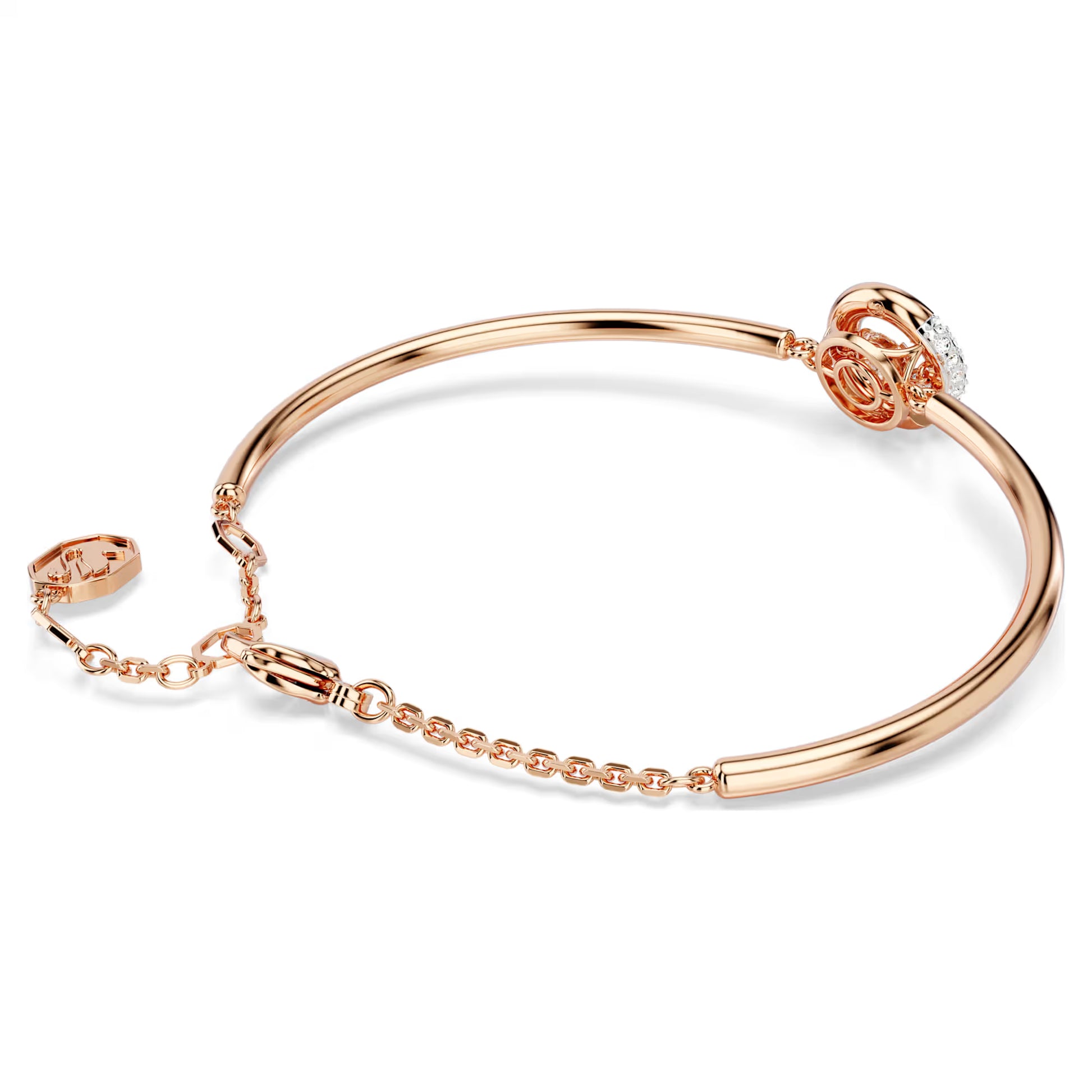 Channel the light with this stunning Dextera bangle. This rose gold-tone plated design with lobster closure features a central hoop half encrusted with a pavé of clear crystals, and with a dancing Swarovski Zirconia placed in the middle. Wear with a matching pendant or earrings to radiate joy.