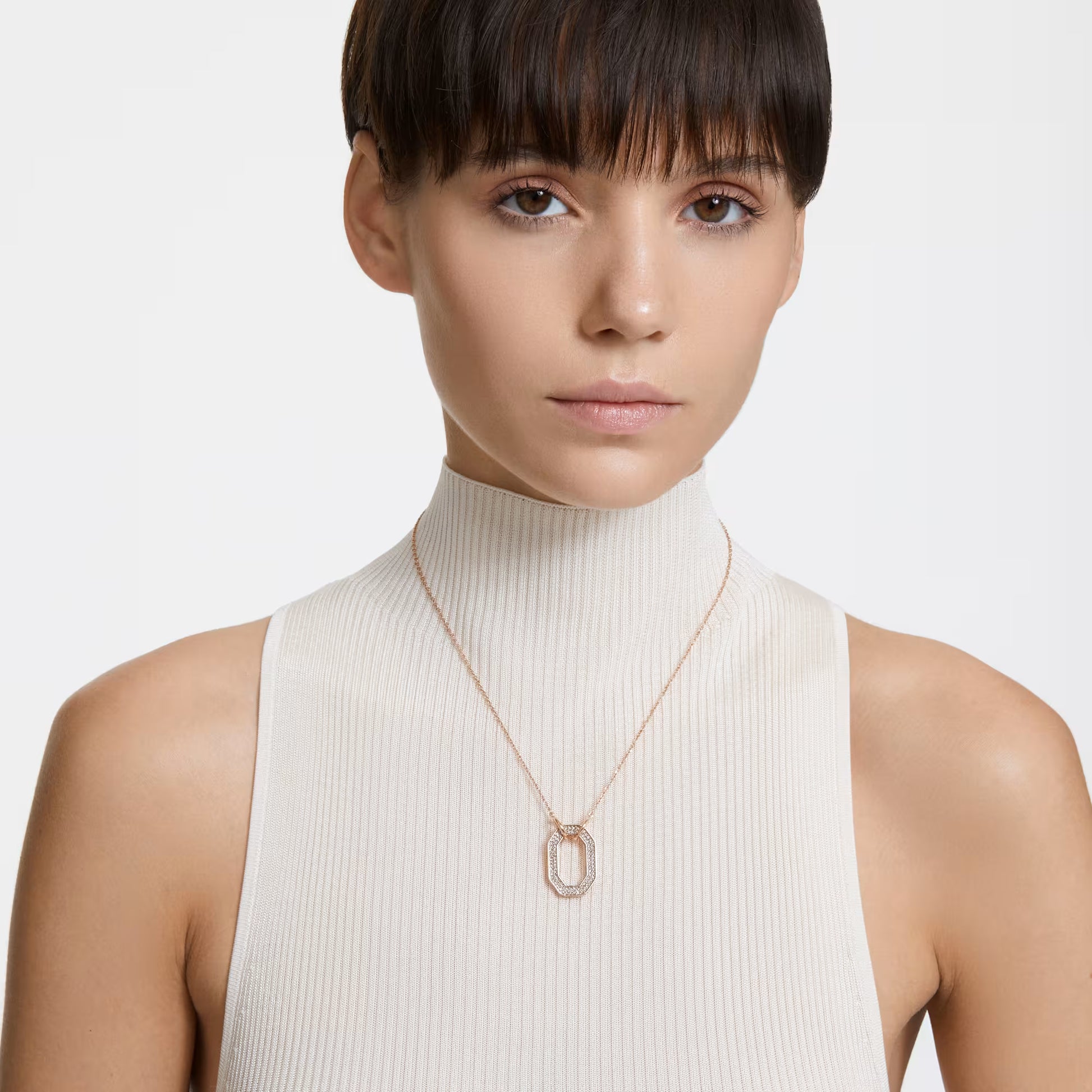Dextera Pendant, Octagon, Pavé, White, Rose Gold