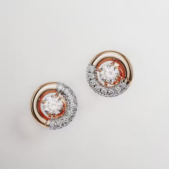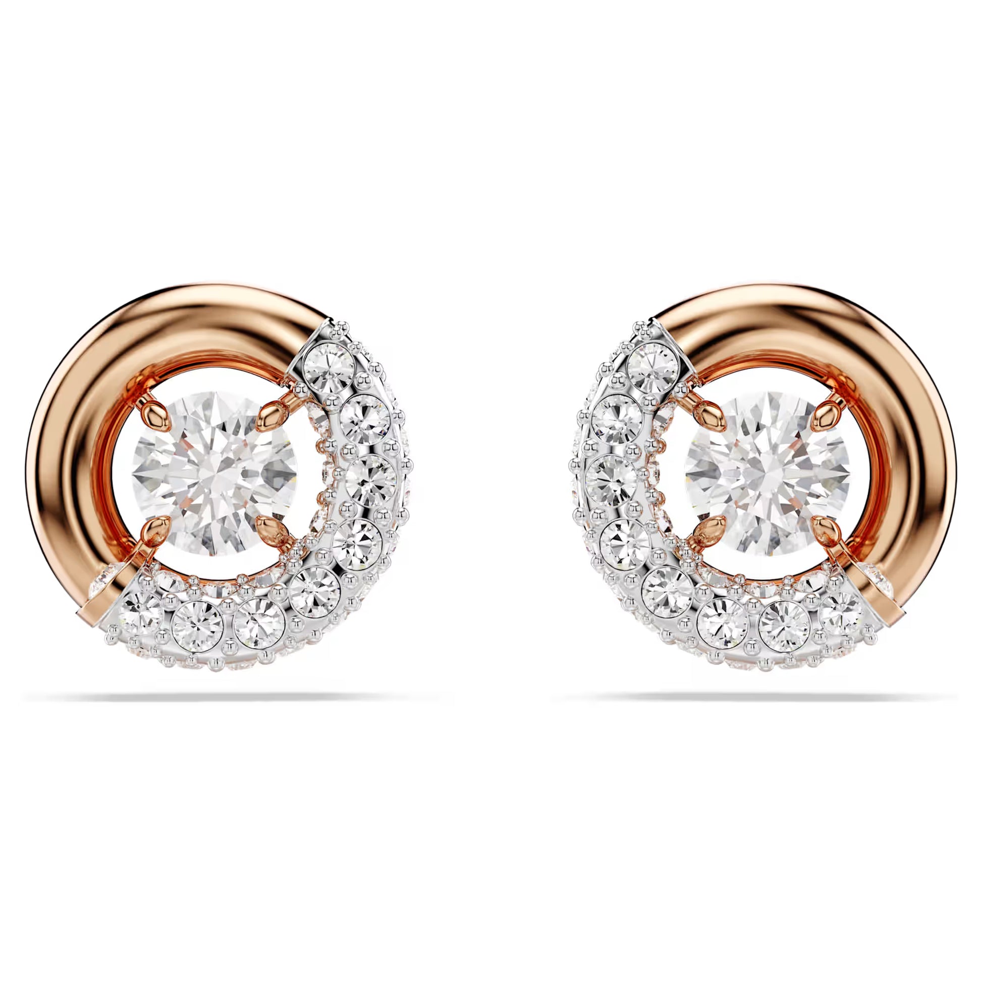 Dextera Stud Earrings, Round Cut, White, Rose Gold