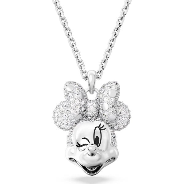 Tie your look in a beautiful bow with this winking Minnie Mouse-inspired pendant celebrating 100 years of Disney. The rhodium plated design features a pavé of clear crystals, and combines legendary imagination with Swarovski savoir-faire. Perfect for anyone with their own playful style.
