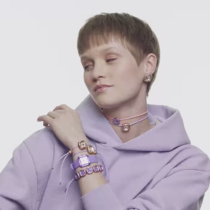 Drawing inspiration from the Pop Art movement, this necklace features a single precision-cut crystal cushioned in a glossy, moulded setting, playfully suspended on a violet, braided cord. Layer yours up in multiples for an experimental look, or wear it alone for a singular burst of colour. This necklace is part of the Dulcis family, designed by Creative Director Giovanna Engelbert for Collection II.