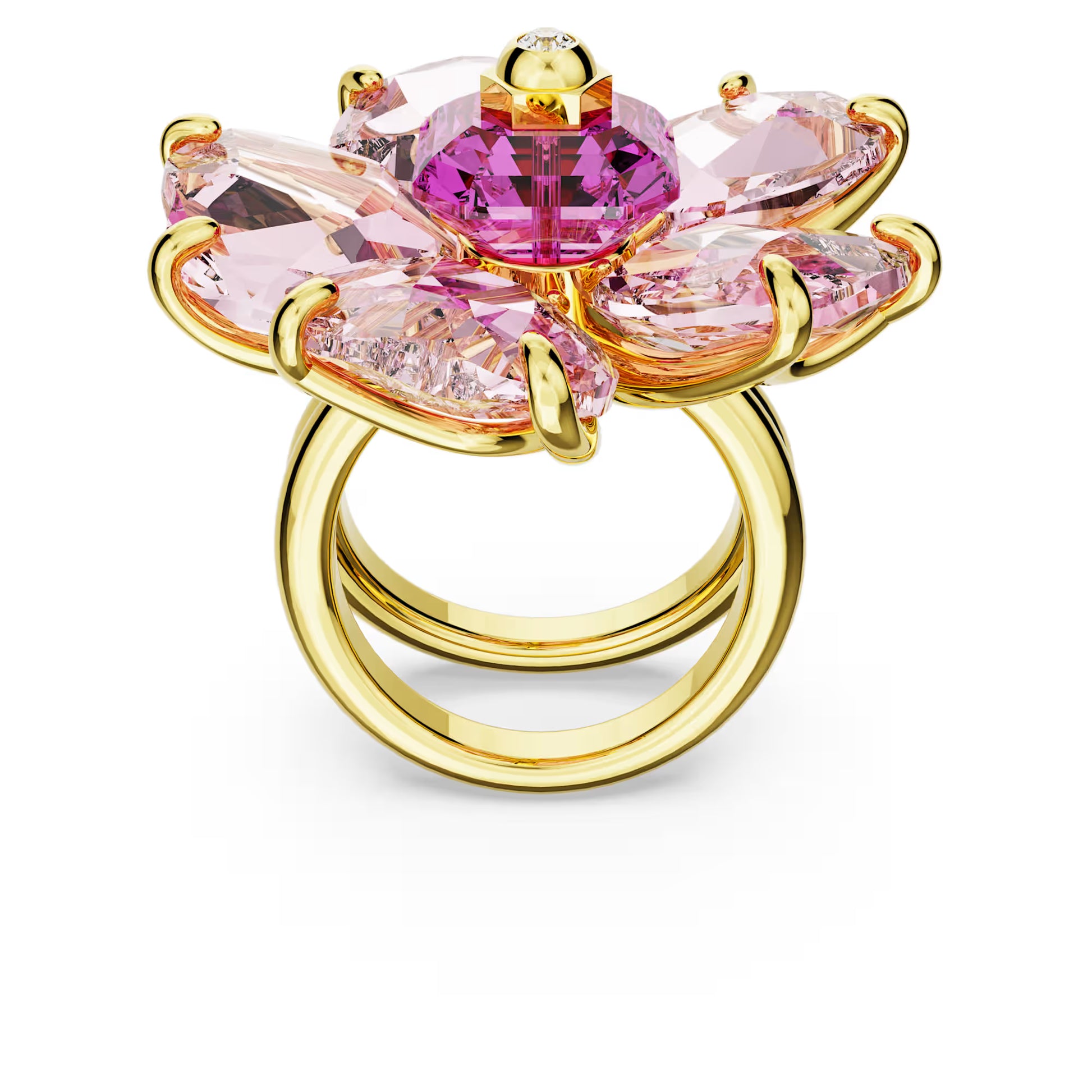 Florere Cocktail Ring, Flower, Pink, Gold Tone