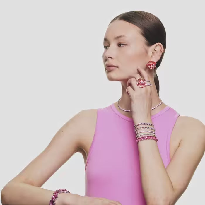 Unfolding before your eyes in a bloom of pink crystals, this extraordinary Idyllia ring is a true sight to behold. Set around a vibrant central stone, each faceted petal is held in place on a shining gold-tone plated setting, while the ring itself is double shanked to fit snugly around the finger. Wear this beautiful piece to brighten your everyday style.