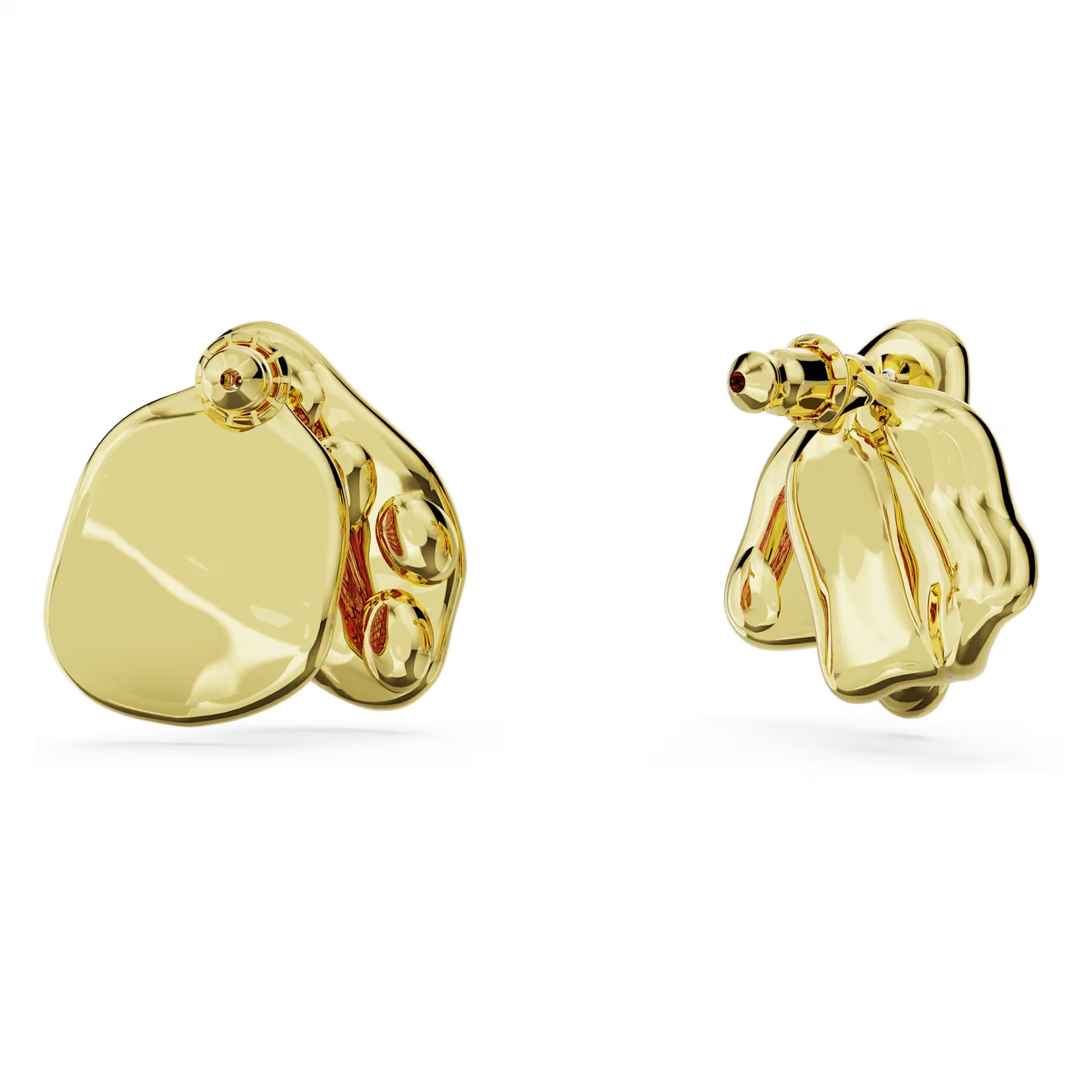 Idyllia Stud Earrings, Asymmetrical Design, Flower, Pink, Gold Tone Plated