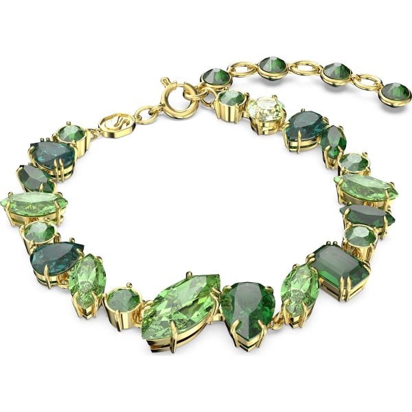 Gema Bracelet, Mixed Cuts, Green, Gold Tone
